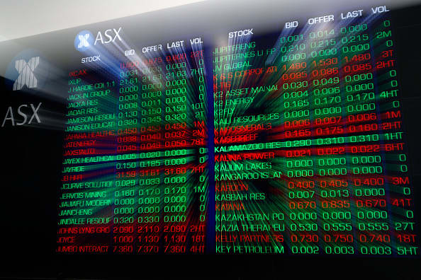 An electronic board displays stock information at the Australian Securities Exchange, operated by ASX Ltd. on March 16, 2020 in Sydney, Australia.