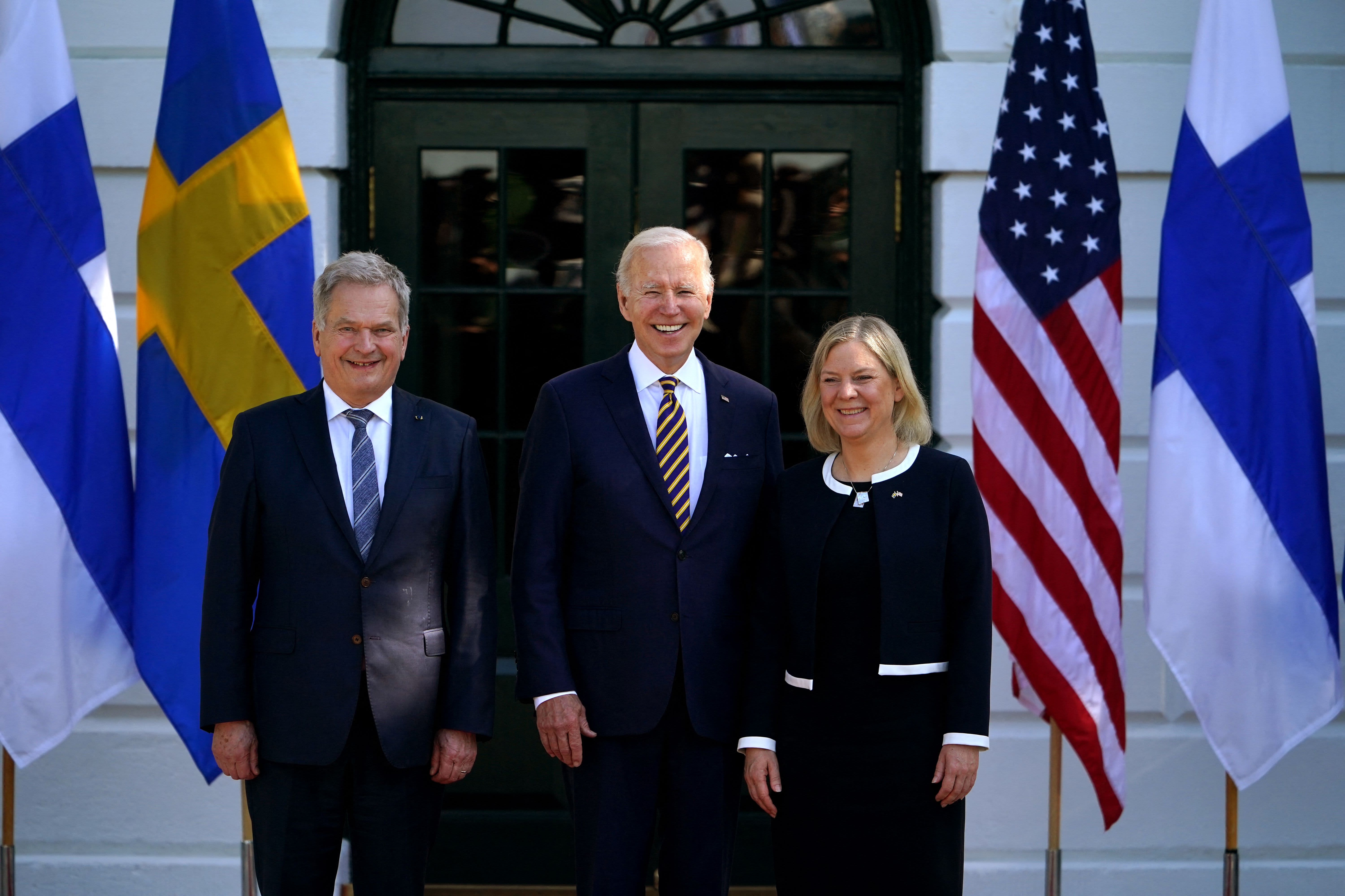 Biden, flanked by Finnish President Sauli Niinisto and Swedish Prime Minister Magdalena Andersson, said the two countries would “make NATO stronger.” He called their moves to join the pact a “victory for democracy.”
