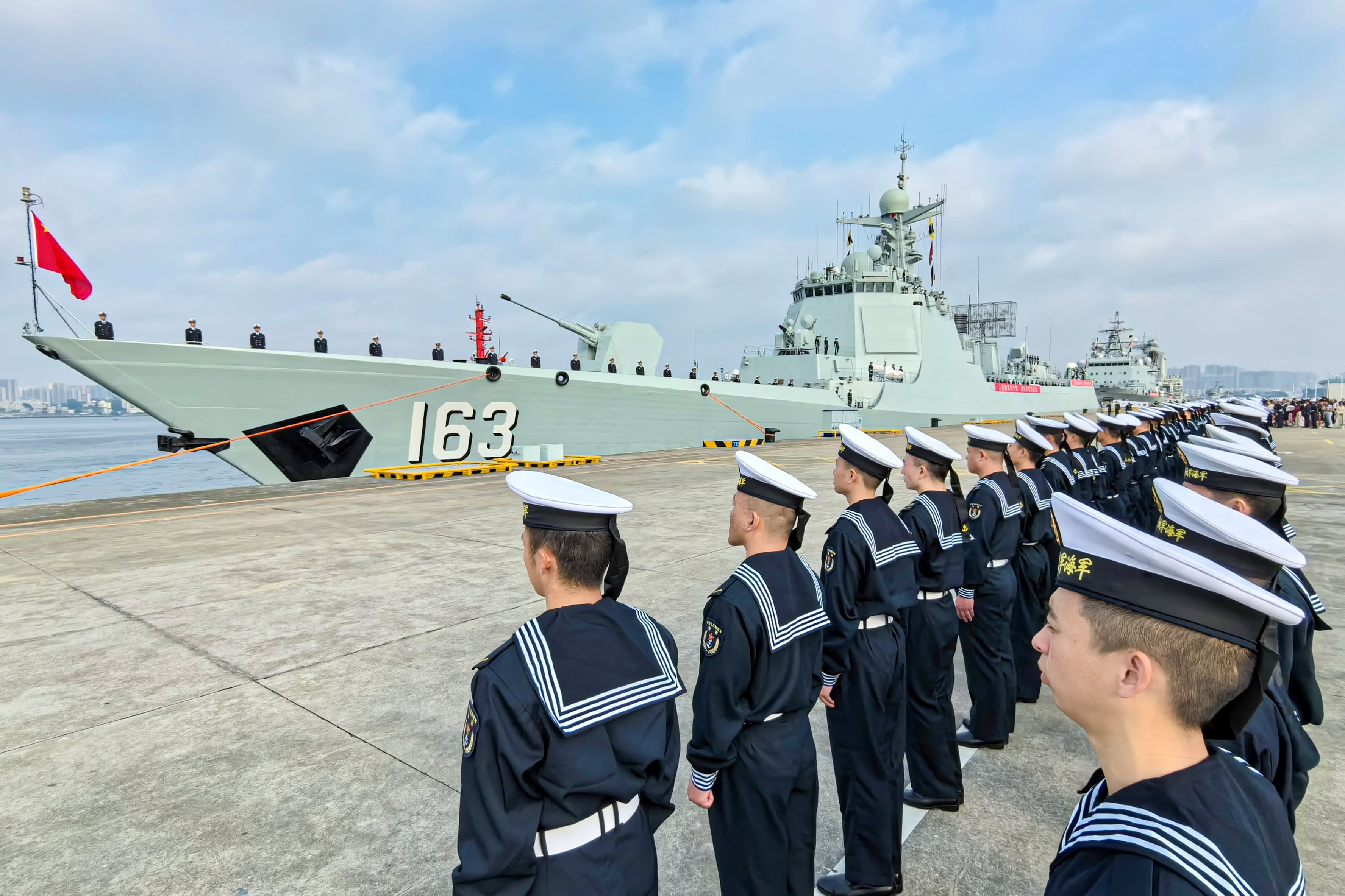 The 46th fleet of the Chinese People’s Liberation Army Navy sets sail from a military port in Zhanjiang, south China’s Guangdong Province, Feb. 21, 2024.