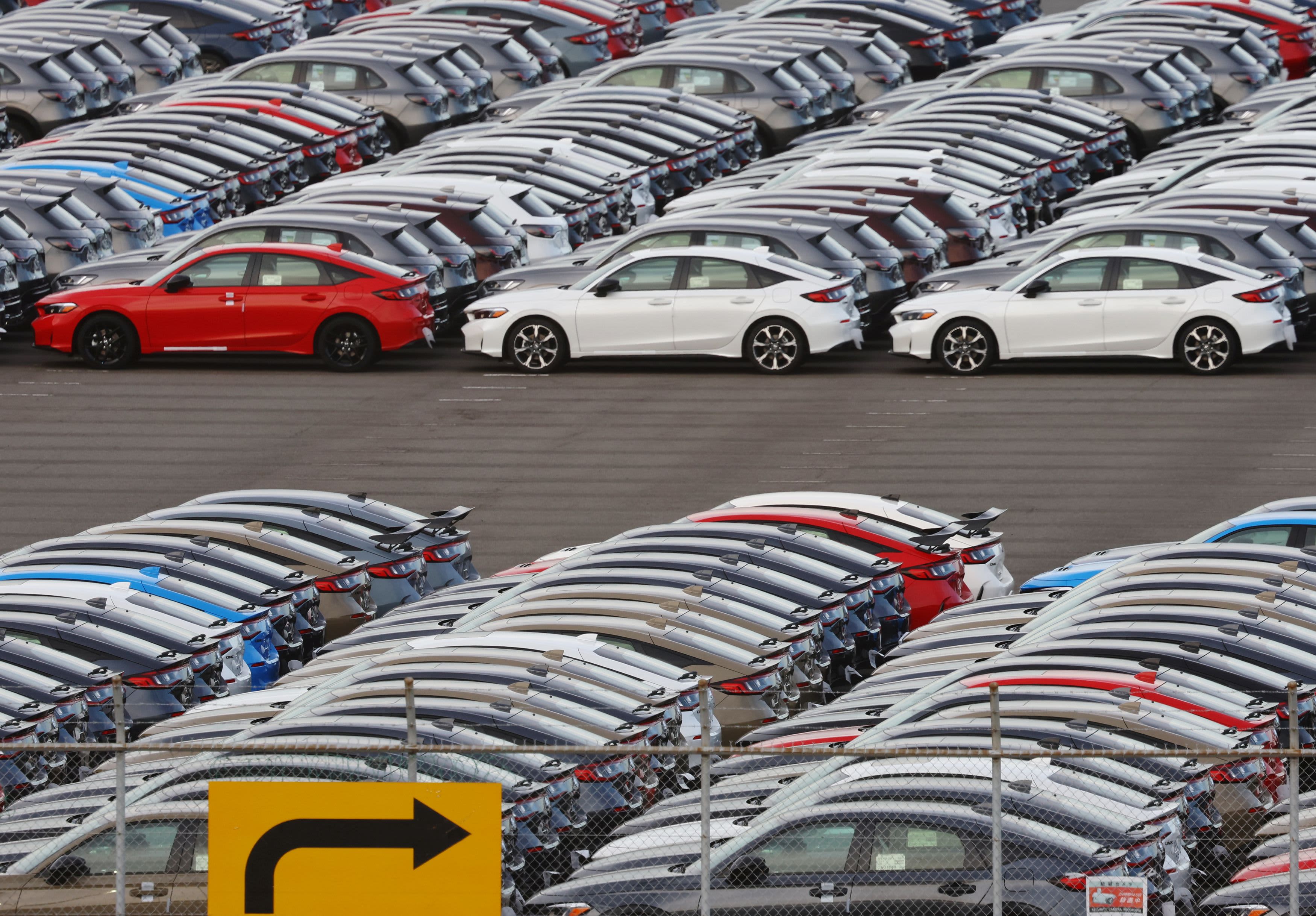 Honda vehicles are lined up at a vehicle storage yard at an industrial port, on the day U.S. President Donald Trump struck a trade deal with Japan that lowers tariffs on auto imports, in Yokohama, near Tokyo, Japan, July 23, 2025.