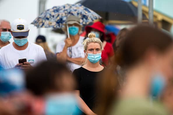 People are seen lining up at a Covid-19 testing site at Mona Vale Hospital on Dec. 18, 2020 in Sydney, Australia.