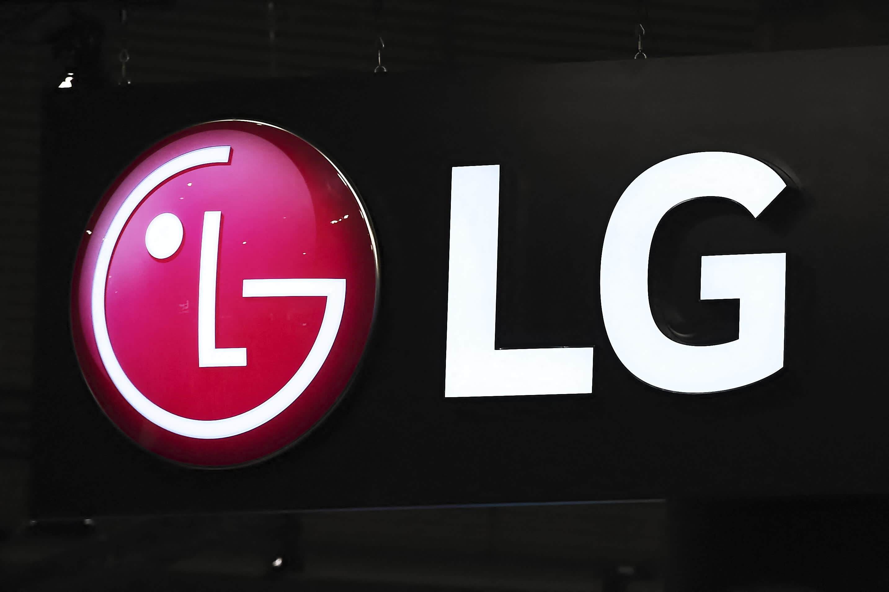 The logo of LG Electronics is seen on the opening day of the Integrated Systems Europe exhibition in Barcelona on January 31, 2023.