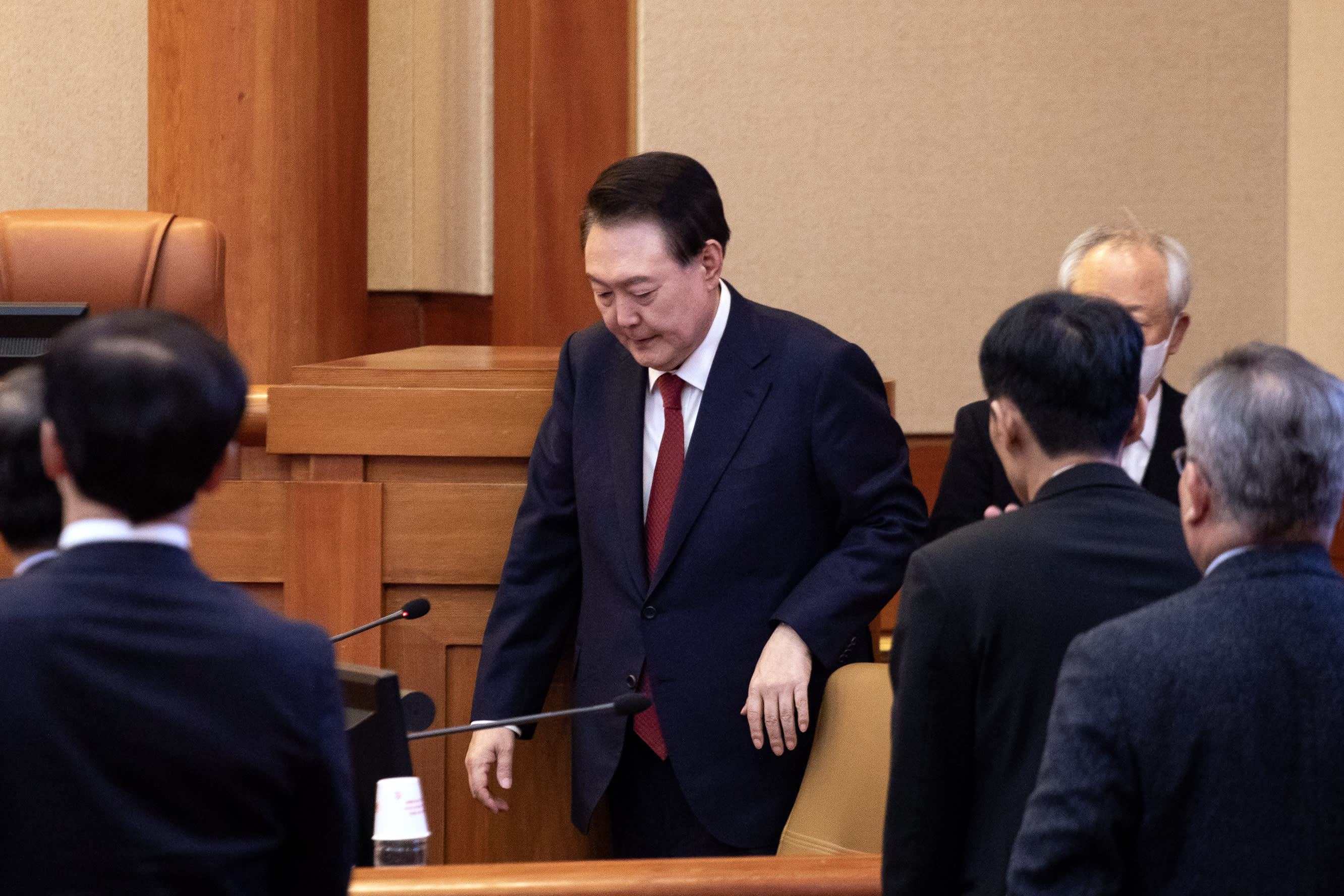 Yoon Suk Yeol, South Korea’s president, arrives for a hearing at the Constitutional Court of Korea in Seoul, South Korea, on Tuesday, Jan. 21, 2025.
